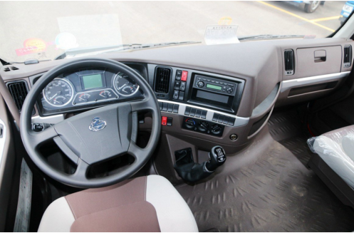 乘龙H5 4x2港口牵引车在细节之处有不少的升级,座椅就是其中一项,增加头枕和扶手,并优化了整体结构,舒适性有不小的提升,有效降低了长时间行车的疲劳感。不过米色表面防污能力有待提高,平常使用应多注意。
