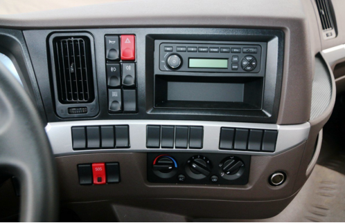 在配置上,车载MP3、空调、24V电源等基本舒适性配置都没有缺席。中央还预留有许多空白按键,方便后期加装,按键尺寸很大,利于盲操作,实用性很高。