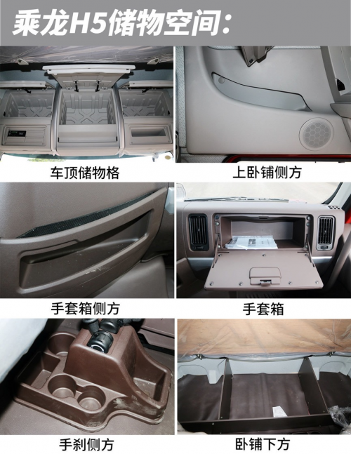 高顶双卧驾驶室也带来了丰富的储物空间,足够装下跑南闯北的所需生活用品,小储物格的使用也是颇为顺手,说明设计之初有考虑过驾驶员使用场景,值得点赞。