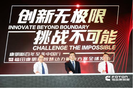 【康明斯全球副总裁刘晓星、福田汽车党委书记、总经理巩月琼、福田汽车集团品牌副总裁、新闻发言人李健发布一体化解决方案】