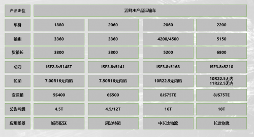 对于用户来说,找到一款适合自身运输工况的产品,是最幸福的事。和其他运输市场不同,活鲜水产品的运输条件苛刻,活鲜水产品品种繁多、生产受季节影响大。活鲜水产品容易腐坏,本身却又具有高附加值,运输过程需要在保证高时效性的同时,保证货物本身的新鲜程度。这就需要有一款能够实现自身运输效率与运营成本双向优化的产品。