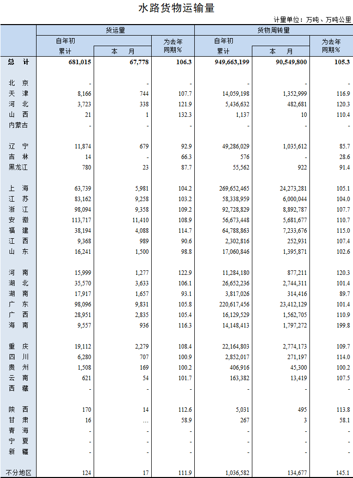 2019年11月水路货物运输量