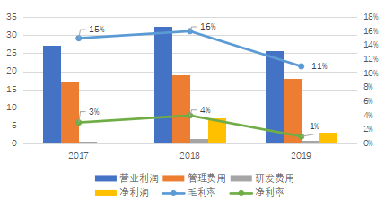 从近三年的财务数据中可以看出,2018年德邦在管理费用及研发费用的支出上都有较大提升,2019年同样维持着较高的管理费用及研发费用水平,连续的投入在报表上反映为利润的显著下降。