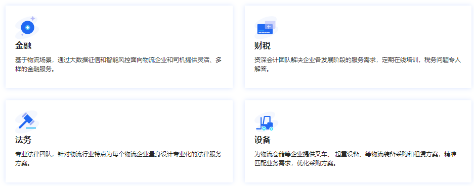 另外,智运大数据平台(zy.zone)联合各城市当地优秀的财税企业、律所企业、物流设备生产企业等行业配套企业,为物流行业提供专业的财税顾问服务、法律咨询服务、作业设备采购服务等一整套服务、咨询、采购解决方案。