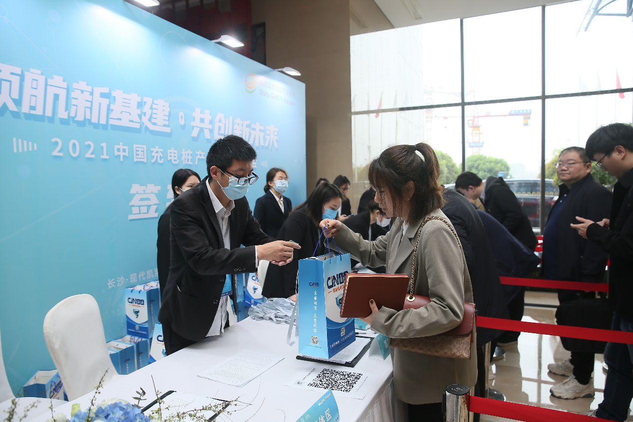嘉宾签到 4月16日上午,由湖南京能新能源科技有限公司和国网湖南电动汽车服务有限公司联合承办的“领航新基建·共创新未来“2021中国充电桩产业发展大会在长沙举行。本次活动以“领航新基建 共创新未来”为主题,来自政界、企业界、专业协会等领域的专家学者参与讨论,并就“新能源汽车产业如何赋能助力碳达峰、碳中和”开展讨论和对话。