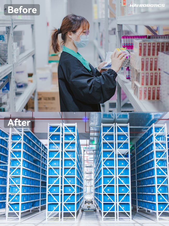在中智大药房的新仓储配送中心里,拣选方式已从“人找货”升级为“货到人”。海柔创新为中智提供了13000余个存储位置,配备4.2米高的货架、多台HAIPICK A42库宝机器人和HAIPORT装卸机。中智方面表示,目前存储密度比以往人工仓提高了80%。机器人系统的精准导航、识别和拣选,让效率和准确率大幅提升。 即使是在阴凉库工作,机器人的运行效率也不受影响。 目前,中智大药房已实现了B2B和 B2C业务的库存共用管理,药品流通和资金周转也在逐步改善。