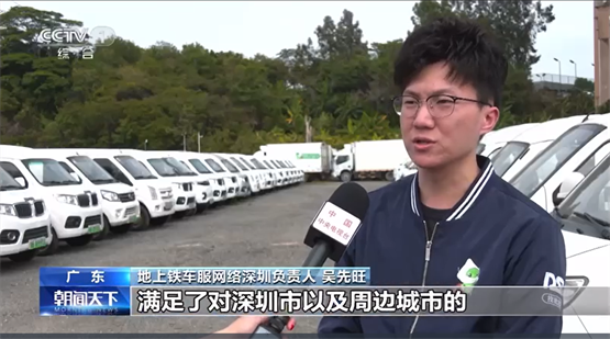 (地上铁车·服网络深圳负责人-吴先旺接受央视记者采访) 地上铁车·服网络深圳负责人吴先旺接受了央视记者的采访,他表示:“截止2022年底,地上铁实际投入运营的电动物流车已超过了7万台,是全球最大的新能源物流车运营服务平台,服务司机用户超过35万名,互联互通充电桩超56万个。目前,所有电动车辆的出租率维持在90%以上,服务5000多家企业客户,车辆售卖的销量也在逐年快速增长,满足了深圳及全国200多个城市绿色物流快速发展的需要。” 目前,深圳市新能源物流车的保有量到2022年底已达到9.65万辆,连续八年成为全国新能源物流车保有量最大的城市。目前全市从事运输业务的轻型货车数量约40万辆,汽柴油货车和纯电动车的比例接近3:1。据测算,每辆轻型纯电动货车在行驶过程中由于不需要化石燃料的消耗,每年能减少超过4吨的直接碳排放。 深圳市协力新能源与智能网联汽车创新中心主任谢海明在采访中也表示,新能源物流车的推广应用无论是对个人或企业,还是对社会都能带来巨大的效益。一是降低从事城配物流司机使用车辆的燃料成本,每公里燃料成本降低60%以上,5年综合成本能降低30%以上。其次,新能源环境效益突出,使用过程中比燃油车更加绿色、环保,能够直接有效地减少碳排放,早日实现国家的双碳目标。