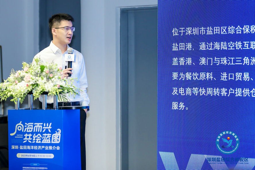 2023年6月14日上午,“向海而兴 共绘蓝图——深圳盐田海洋经济产业推介会”在上海新国际博览中心成功举办。活动由深圳盐田综合保税区经济发展服务中心和深圳市盐田区投资推广和企业服务中心主办,盐田区盐田街道办事处、深圳市中英街商旅服务有限公司大力支持,万联网承办。盐田区投资推广和企业服务中心主任骆妍宇、盐田综合保税区经济发展服务中心副主任黄劲绮、盐田区盐田街道党工委副书记陈素妮、深圳跨境电子商务协会盐田分会会长谢卓亨出席活动。 活动以2023亚洲物流双年展为平台,聚焦产业创新驱动,旨在搭建政企交流平台,推介盐田优质营商环境及政策机遇,吸引来自物流、商贸、金融、科技、法律等众多领域的企业家齐聚一堂,共同探讨推动海洋经济的高质量发展,助力盐田全球海洋中心城市核心区和沙头角深港国际消费合作区建设。