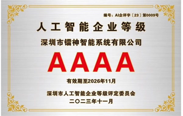本次评选由深圳市人工智能企业等级评定委员会组织开展,从企业资格、创新能力、业务收入、产品和服务、质量保证、企业诚信、经营环境等方面予以综合评价,经过层层筛选,共有36家人工智能企业脱颖而出,镭神智能在本次评级中荣获人工智能4A级企业。