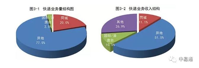 1-2月,同城、异地、国际/港澳台快递业务量分别占全部快递业务量的20%、77.5%和2.5%;业务收入分别占全部快递收入的11.1%、51.5%和10.5%。