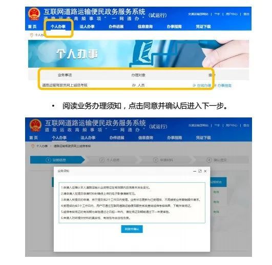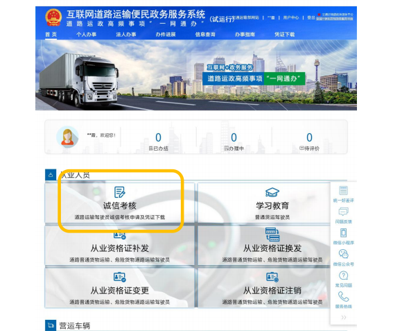目前,驾驶员通过电脑或手机浏览器注册登录互联网道路运输便民政务服务系统,即可网上申请办理普通货物运输和危险货物道路运输从业资格证补发、换发、变更、注销,普通货物运输车辆和危险货物道路运输车辆的道路运输证补发、换发、注销,道路旅客运输、普通货运运输和危险货物道路运输驾驶员的诚信考核,普通货物运输车辆的年度审验等业务,无需回证件核发地办理。