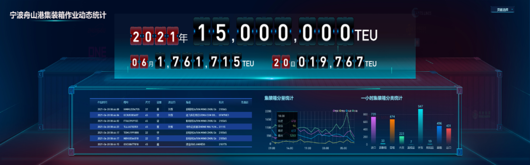 6月20日8时45分,随着宁波舟山港调度指挥中心大屏幕上的集装箱实时生产数据跳过“15,000,000TEU”,宁波舟山港今年集装箱吞吐量提前10天实现“过半”,同比增长20.8%,这是宁波舟山港牢记“优异”“硬核”“强港”嘱托,持续深入打造世界一流强港取得的又一成果。