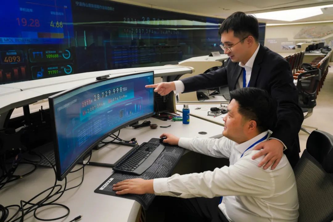 宁波舟山港紧抓浙江全面推进数字化改革的窗口机遇期,始终秉持以优质服务铸强港标杆的质量理念,以智慧港口建设为示范引领,持续为港口发展赋能。宁波舟山港积极探索前沿技术,重点推进梅东、甬舟智能化集装箱码头以及鼠浪湖智能化散货码头等智慧港口试点项目建设。截至目前,梅东公司自动化设备数量与比例位居国内同类码头首位,今年自动化作业量超260万标准箱,占已完成总箱量40%以上。同时,宁波舟山港不断迭代更新自主研发的具备千万级标准箱支撑能力的集装箱码头生产操作系统(n-TOS),持续推进“无纸化”改革,在全国率先实现智能理货“规模化、全覆盖”。此外,“海港疫情防控数字化管控平台”成功上线,提升了疫情主动防控能力和精准管控水平。