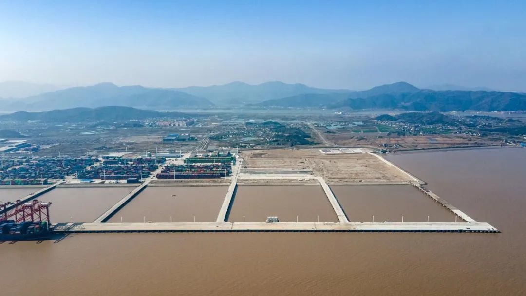 图为宁波舟山港梅山港区6至10号集装箱码头工程现场。