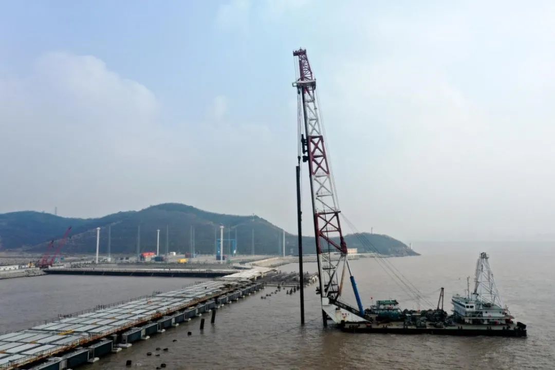 春节假期,宁波舟山港金塘港区大浦口集装箱码头工程施工现场热火朝天,“咣咣咣”的打桩声好似新春鼓点,为5号泊位建设加油鼓劲。为确保泊位在今年上半年完工,港口建设者们放弃休假,抢抓工期,加班加点进行码头沉桩施工。金塘港区大浦口集装箱码头工程是宁波舟山港一体化战略决策的示范工程,规划建设2个10万吨级和3个7万吨级集装箱泊位(水工结构均按靠泊15万吨集装箱船设计),设计年通过能力250万标准箱。目前,该码头已建成投用3个集装箱泊位,在建的4号、5号集装箱泊位预计年内完工投用,届时将有效提升金塘港区集装箱作业能力,减少国际航行船舶待港时间。