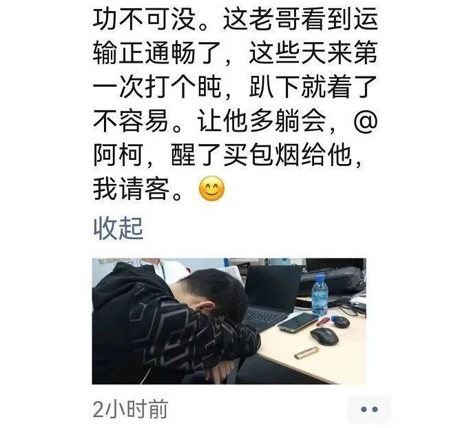 “不容易。让他多躺会,@阿柯,醒了买包烟给他,我请客!”这是网友发在微信朋友圈里的一段话。网友口中的“他”叫戚建斌,是一名70后“海港老兵”,也是党员。北仑“10.13”疫情发生以来,作为易港通公司营运操作部负责人的戚建斌主动请缨,第一时间进入该公司防疫专班,及时了解集卡司机出行难题,指导研发团队在短短7小时内开发完成并紧急上线“一键求助”功能,此后又进一步完善“一键返岗”功能,帮助3800多名司机获得返岗作业资格。