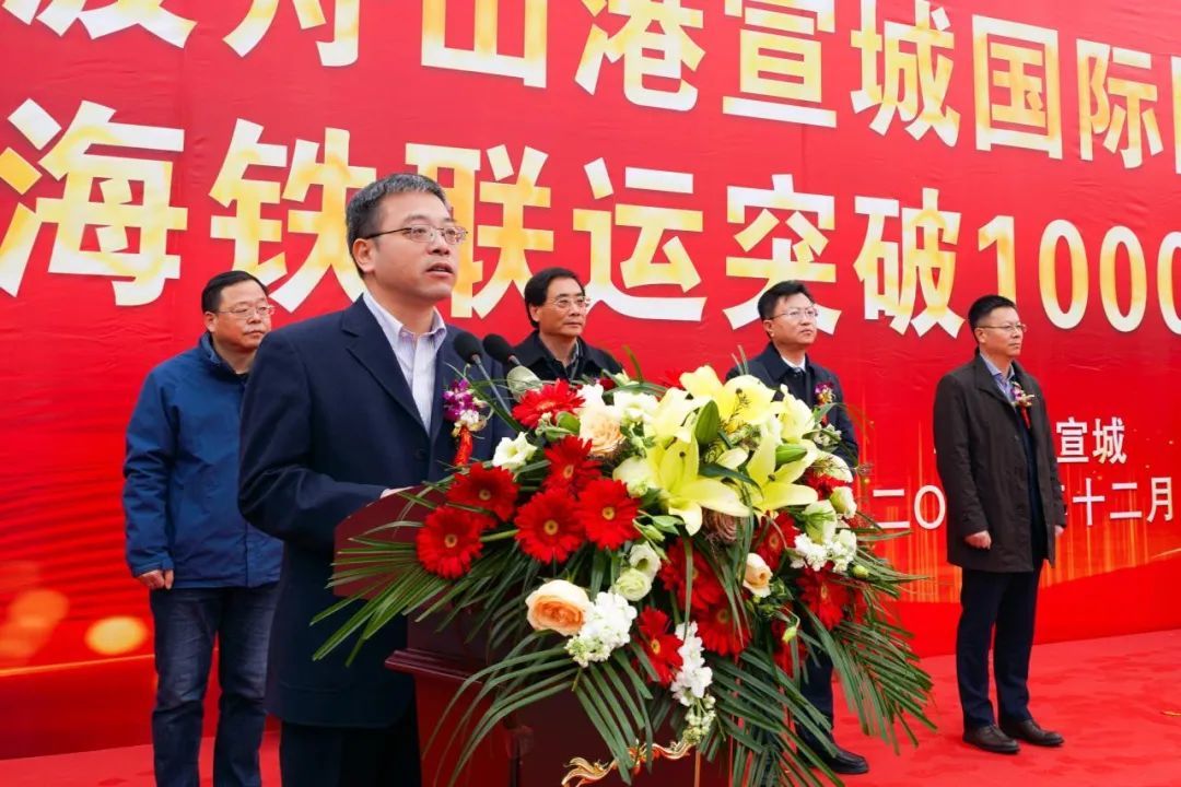 宣城市委书记孔晓宏出席仪式并宣布项目开工及第10000箱发车。市长何淳宽,浙江省海港集团、宁波舟山港集团党委副书记、董事、总经理陶成波分别致辞。市领导吴爱国、张玉峰、王普,市政府秘书长郑华,集团和股份公司领导江涛、石焕挺等出席仪式。