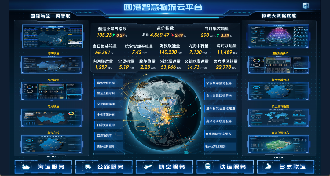 2022年,依托全球第一综合枢纽港——宁波舟山港,宁波舟山国际航运中心海港枢纽及集疏运体系建设表现亮眼。宁波舟山港完成年货物吞吐量12.61亿吨,连续14年位居全球第一,完成年集装箱吞吐量3335万标准箱,继续保持全国第二、全球第三位,同比增幅7.3%,是全球前十大集装箱港口中吞吐量增速最快的港口之一;年度新建成3个专业化大型集装箱泊位,新增作业能力280万标准箱,总作业能力达到4000万标准箱,专业化大型集装箱泊位总数达到39个。航线网络和集疏运体系不断完善,宁波舟山港集装箱航线总数达到300条,其中国际航线248条,海铁、海河、江海联运网络持续织密。