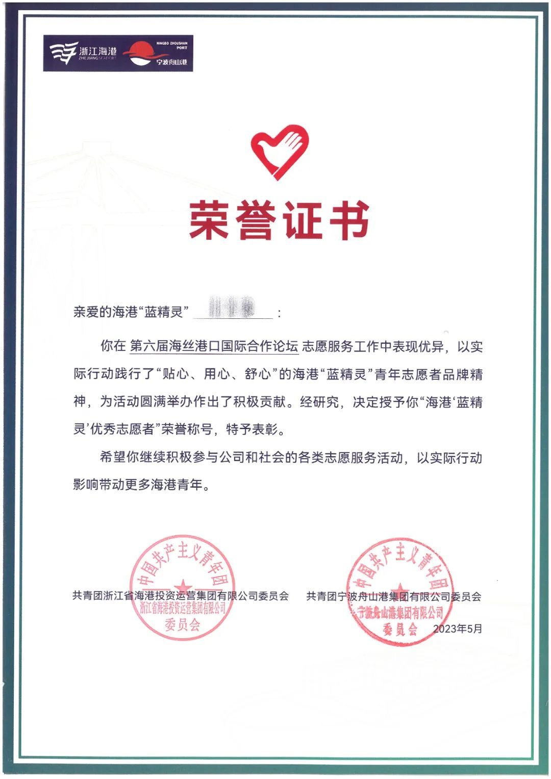 第六届海丝论坛优秀志愿者和全省加快实施世界一流强港建设工程动员部署会、浙江世界一流强港和交通强省建设工程推进会优秀志愿者在现场接受表彰。