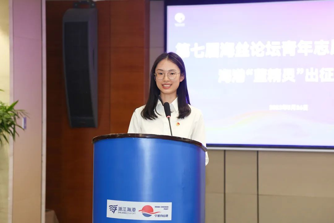 5月26日,浙江省海港集团、宁波舟山港集团在宁波环球航运广场举办第七届海丝论坛青年志愿者服务队海港“蓝精灵”出征仪式,动员海港青年志愿者弘扬“奉献、友爱、互助、进步”的志愿精神,践行“贴心、用心、舒心”的海港“蓝精灵”青年志愿者品牌精神,高质量完成第七届海丝港口国际合作论坛志愿保障工作。
