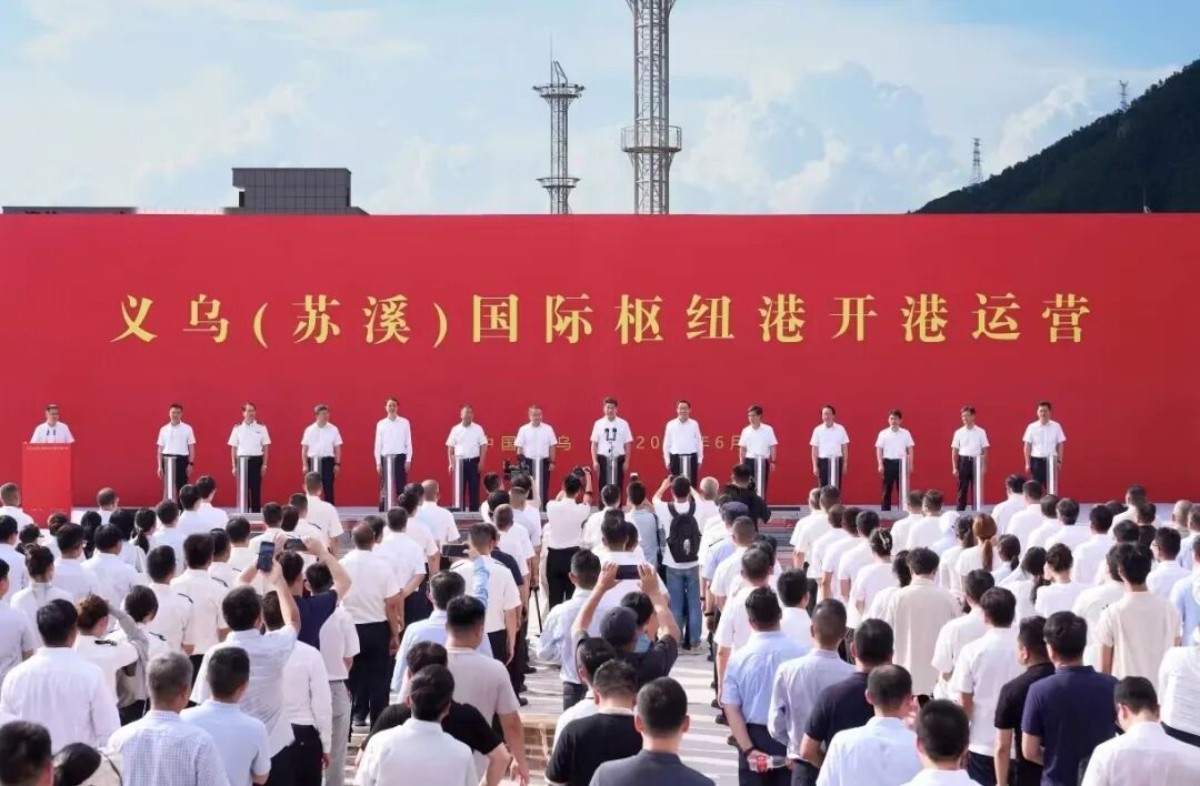 6月27日下午,随着副省长柯吉欣宣布开港,一列满载光伏板、日用百货等100个标准集装箱货物的81114次班列从浙江义乌苏溪集装箱办理站鸣笛启程,驶向世界第一大港宁波舟山港。至此国内首个混行模式自动驾驶试验铁路场站——苏溪集装箱办理站开通启用,义乌(苏溪)国际枢纽港开港运营,也标志着“浙江e港通”全国首个“三化两全”示范标杆站点正式落地,实现智能化、可视化、预警化,信息全程管控、全链追踪。
