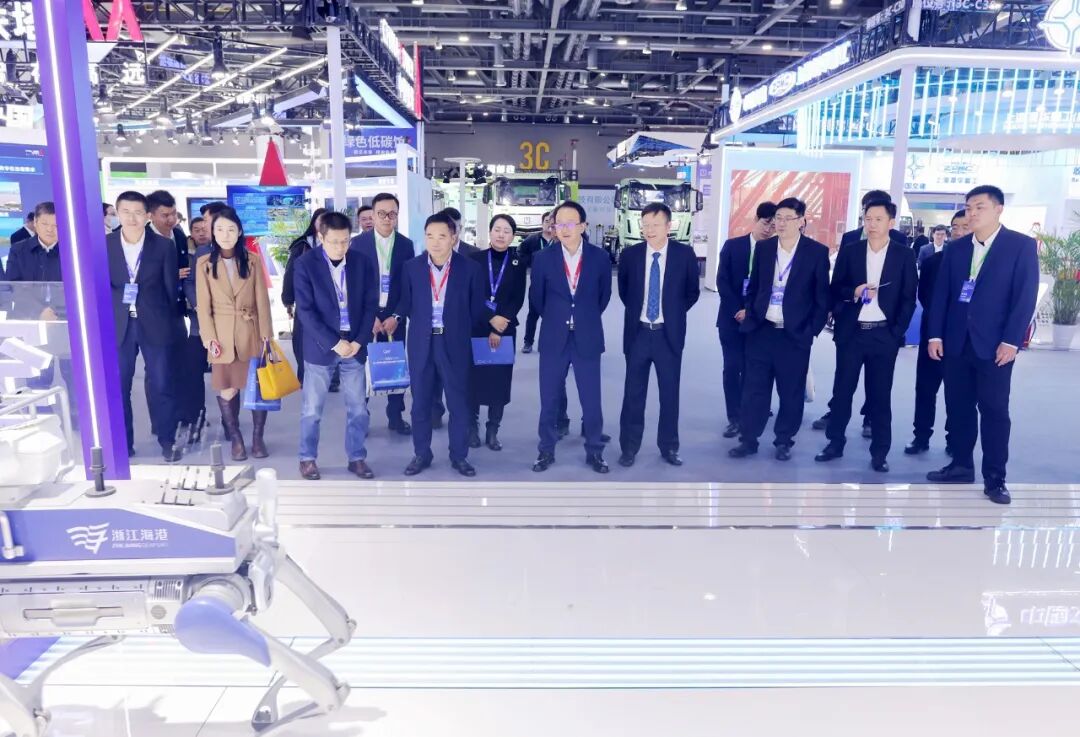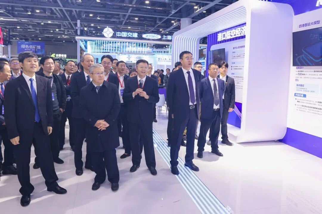 开幕式前,交通运输部党组成员、副部长王刚,浙江省委常委、常务副省长徐文光,浙江省交通运输厅党组书记、厅长蔡洪等领导在巡馆期间,来到集团展位参观指导。