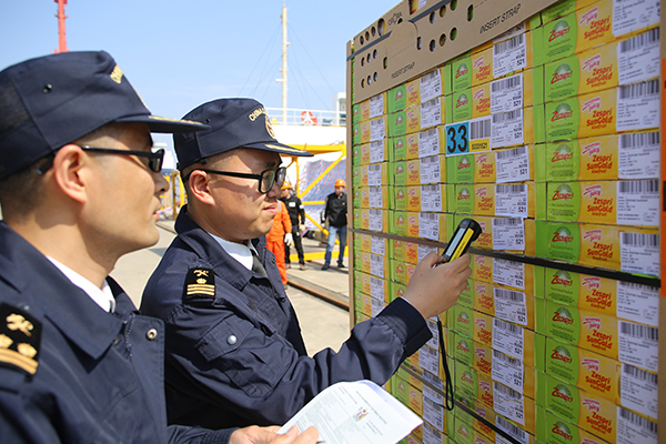 洋山海关按照法律规定及监管要求,依托自贸区优势,发挥上海南港码头海关监管区域作用,开展“查检合一”“快检快放”等措施,在严把国门安全关、质量关的同时,将进口水果的通关时间缩短至1天以内,不仅保证了进口水果的新鲜口感,也降低了相关企业的物流、时间成本。