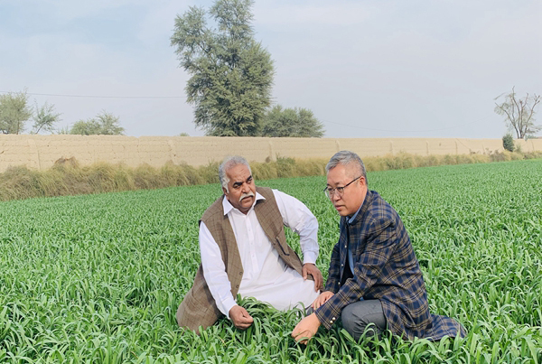 4月的巴基斯坦,田间一片生机盎然的景象,从中国进口的杂交水稻中莲优950长势喜人。