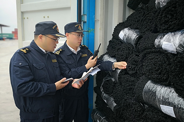 经南京海关工业产品检测中心鉴定,南通海关日前查获的一批申报品名为再生橡胶的货物,实际为轮胎橡胶再生过程中脱硫不充分的废碎料及下脚料或不合格品, 属于我国禁止进口的固体废物。这批货物由南通某公司以一般贸易方式申报进口,共52.81吨。目前已移交海关缉私部门进一步处理。