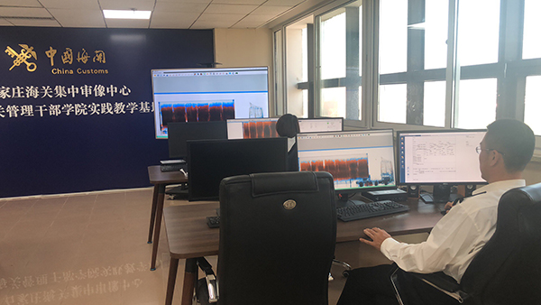 图为:石家庄海关集中审像中心应用智能审图系统审结首票报关单