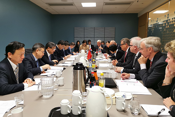 图为:倪岳峰会见挪威渔业大臣哈拉尔·内斯维克