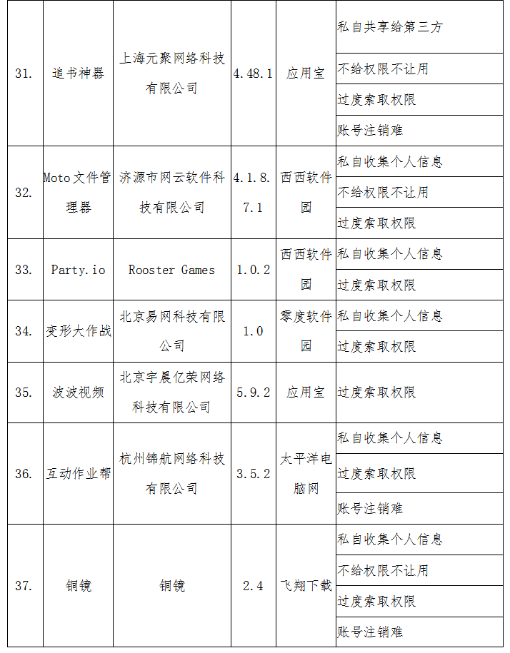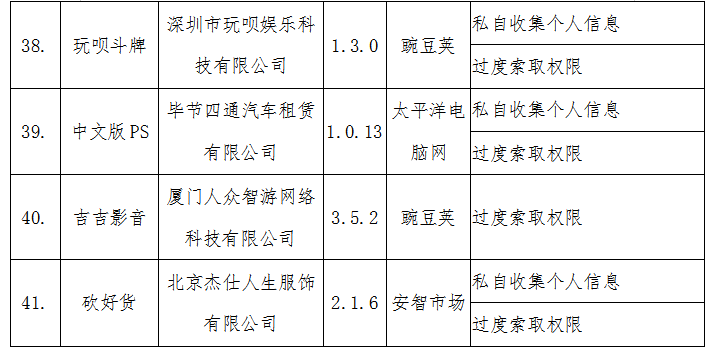 截至目前,尚有41款APP存在违规收集、使用用户个人信息、不合理索取用户权限、为用户账号注销设置障碍等问题,未完成整改。上述APP应在12月31日前完成整改落实工作,逾期不整改的,工业和信息化部将依法依规组织开展相关处置工作。